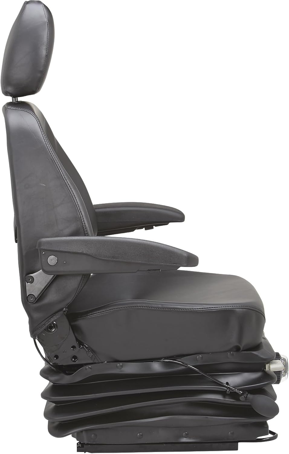 This KAB 515 Black Vinyl Heavy-Duty Mechanical Suspension Seat is a direct fit replacement for Caterpillar, JCB and Volvo excavators and front-end loaders. Its cut and sew vinyl cushion covers provide extra comfort and durability. Seat adjusts to fit any user, with 8in. slide rails, height, weight and tilt adjustment and adjustable backrest.