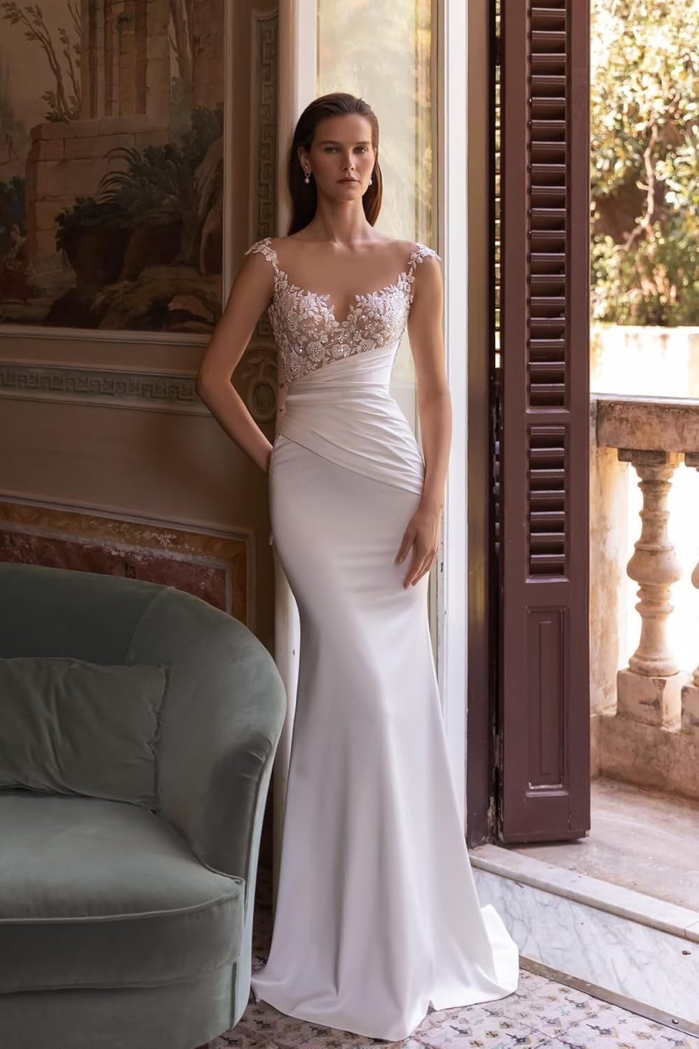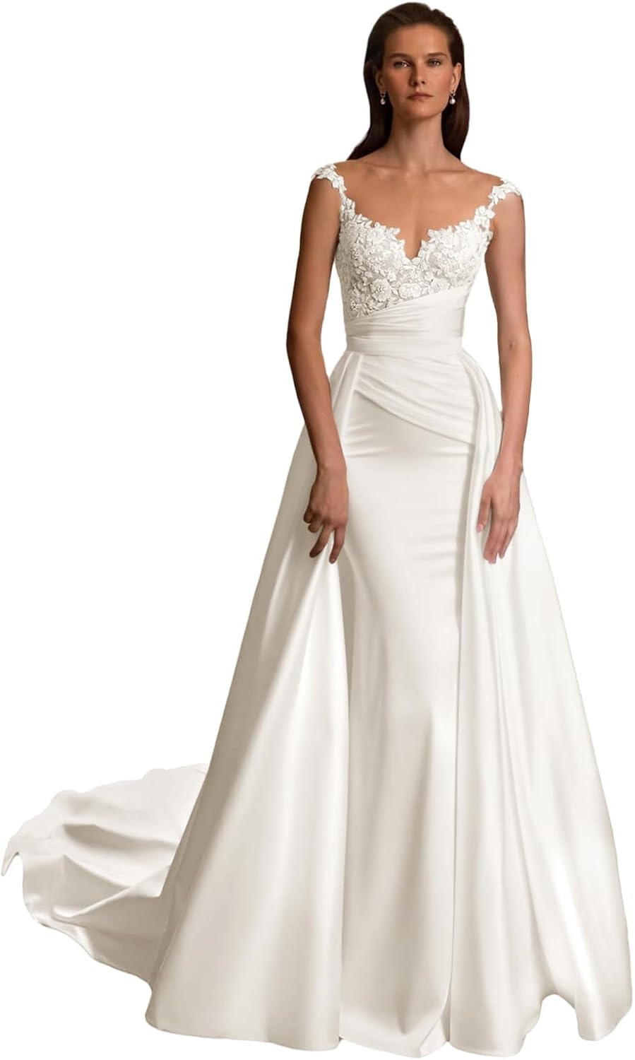 | Fabric Type | Satin Mermaid V Neck Lace Appliques Wedding Dresses for Bride 2025 with Train |