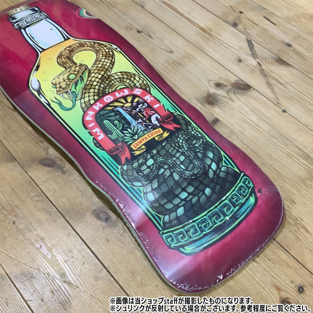 The Santa Cruz Skateboards Winkowski Agave Snake Shaped 10.35" x 30.54" deck features black sunburst effect deck bottom artwork on Erick Winkowski's custom shape with 15" wheelbase. 7 ply North American Maple pressed individually using epoxy - making a strong, responsive deck with long lasting pop and consistent concave and kick. Cruz Missile II concave is Santa Cruz's infamous tech concave from the 1980s with aggressive, multi-dimensional side to side concave and tail kick along with forward set rocker that comfortably lock in your feet in key areas for a completely unique riding experience - cruising the streets or skating transition on old school or shaped decks with longer tail than nose.