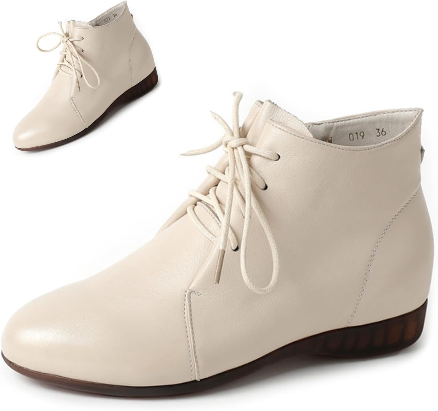 Premium Genuine Leather: Crafted from high-quality leather that ensures durability and maintains a polished appearance through extended wear Comfortable Round Toe: Features a spacious round toe design that provides ample room for natural toe movement and ensures all-day comfort Convenient Side Zipper: Includes smooth-functioning side zipper that enables easy wearing and removal while maintaining secure fit Stable Wedge Heel: Designed with a comfortable wedge construction that provides continuous support and balanced elevation for walking Secure Lace-Up Option: Offers traditional lace-up design that allows customizable fit and enhanced ankle support Anti-Slip Soft Sole: Engineered with flexible TPR outsole that delivers reliable traction on various surfaces during commuting Versatile Office Wear: Perfect for professional settings and business environments while maintaining stylish appearance All-Day Comfort: Features cushioned footbeds and adequate arch support that ensures comfort during prolonged wear Lightweight Construction: Built with weight-reducing materials that prevent fatigue during extended walking and commuting Durable Design: Combines quality craftsmanship with reinforced stitching for long-lasting performance in daily use