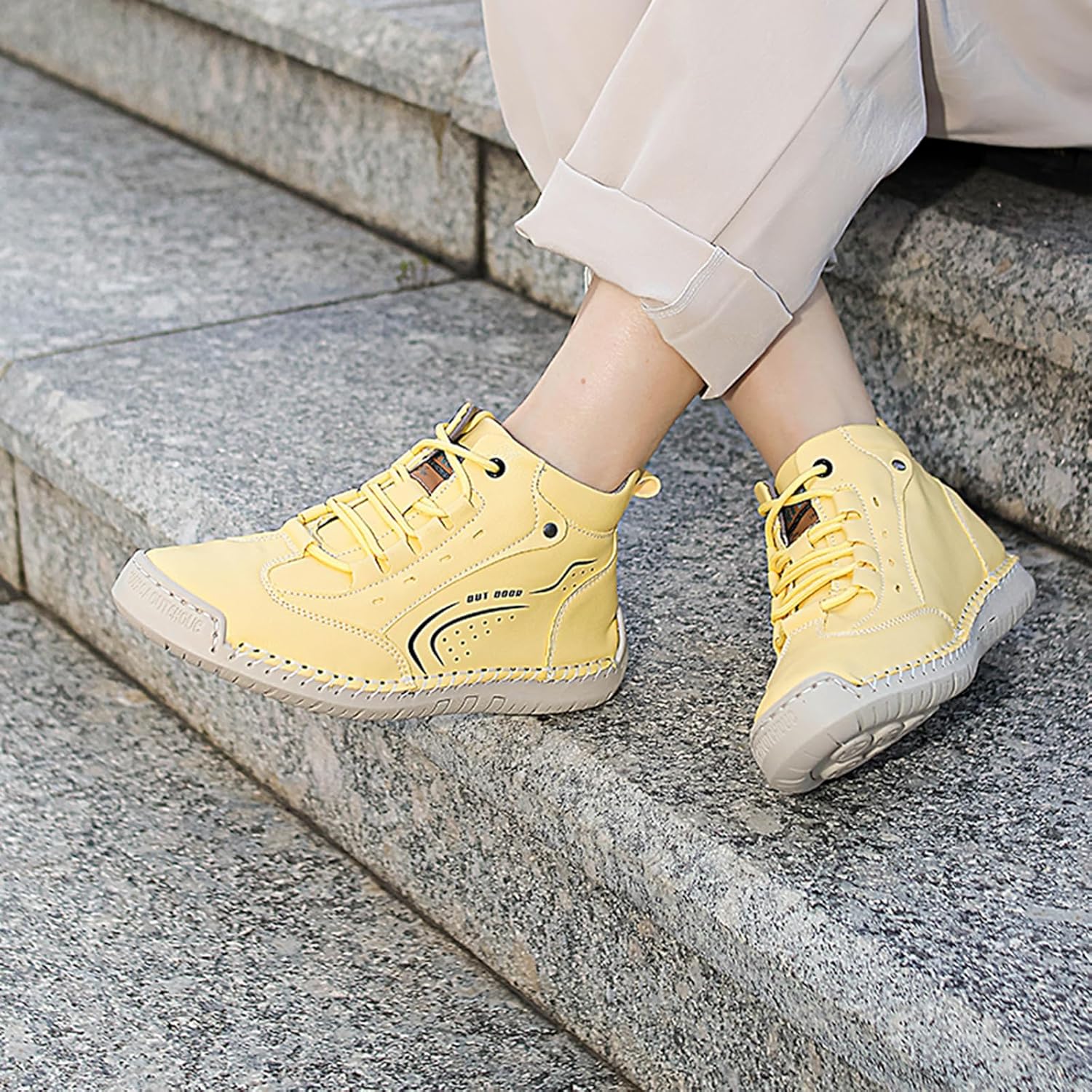 Product Description The design and production of each pair of women's leather hand stitching lace up ankle boots goes through a strict process, from drawing to design to the final product based on careful and precise craftsmanship. Every visible and invisible detail, we hope to bring surprises to your life. Style: Women's Leather Hand Stitching Lace Up Ankle Boots Color: Beige/Yellow/Blue/Green Upper Material: PU leather Lining material: Mesh Sole Material: Rubber Heel Type: Flats Closure Type: Lace up Toe Style : Round toe SIZE: US size 5 is for foot length about 23 cm / 9.06" and we shoes label 36 US size 6 is for foot length about 23.5 cm / 9.25" and we shoes label 37 US size 7 is for foot length about 24 cm / 9.45" and we shoes label 38 US size 8 is for foot length about 24.5 cm / 9.65" and we shoes label 39 US size 8.5 is for foot length about 25 cm / 9.84" and we shoes label 40 US size 9 is for foot length about 25.5 cm / 10.04" and we shoes label 41 US size 10 is for foot length about 26 cm / 10.24" and we shoes label 42 Note : 1.Please make sure to refer the correct size according to our size chart before order. 2.Due to lighting issues and different screen displays, the color may have slight differences. 3.If you have any question or concerns, please feel free to contact us, we will try our best to solve problems and offer a better service.